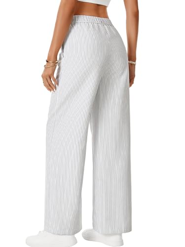 Vrtige Women's Striped Pants High Waisted Wide Leg Drawstring Casual Loose Trousers 6