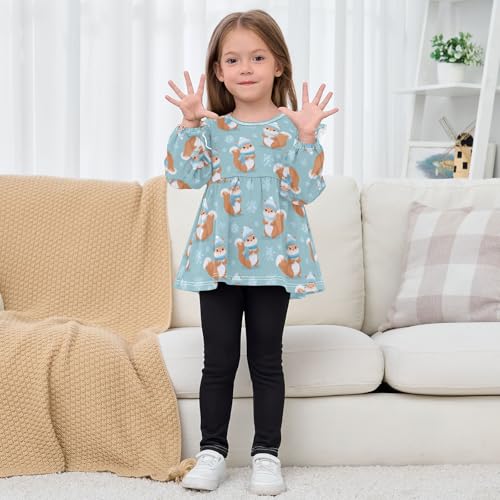Squirrel Snowflake Girls Shirts Cotton Long Sleeve Ruffle Toddler Tee Tops 4