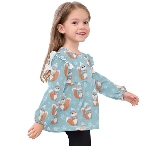 Squirrel Snowflake Girls Shirts Cotton Long Sleeve Ruffle Toddler Tee Tops 1