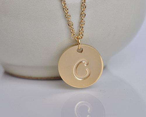 - Stainless Steel Stamped Script Disc Initial Pendant Necklace C