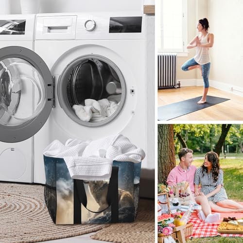 YETTASBIN Wolf Large Foldable Travel Tote Bag, Lightweight Waterproof Swim Pool Bag with Handles & Pocket for Beach Outdoor, Reusable Grocery Bag for Kitchen, Shopping 5