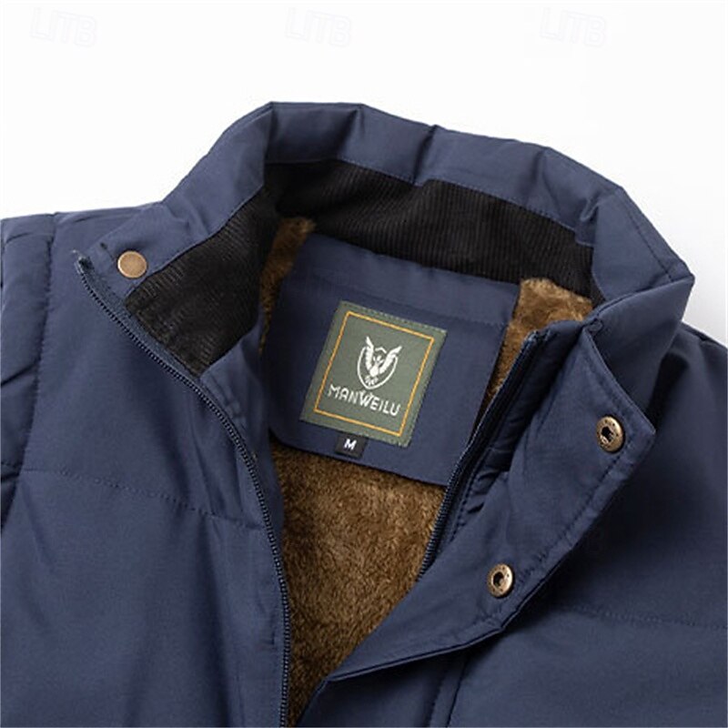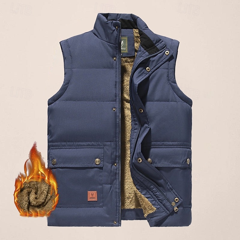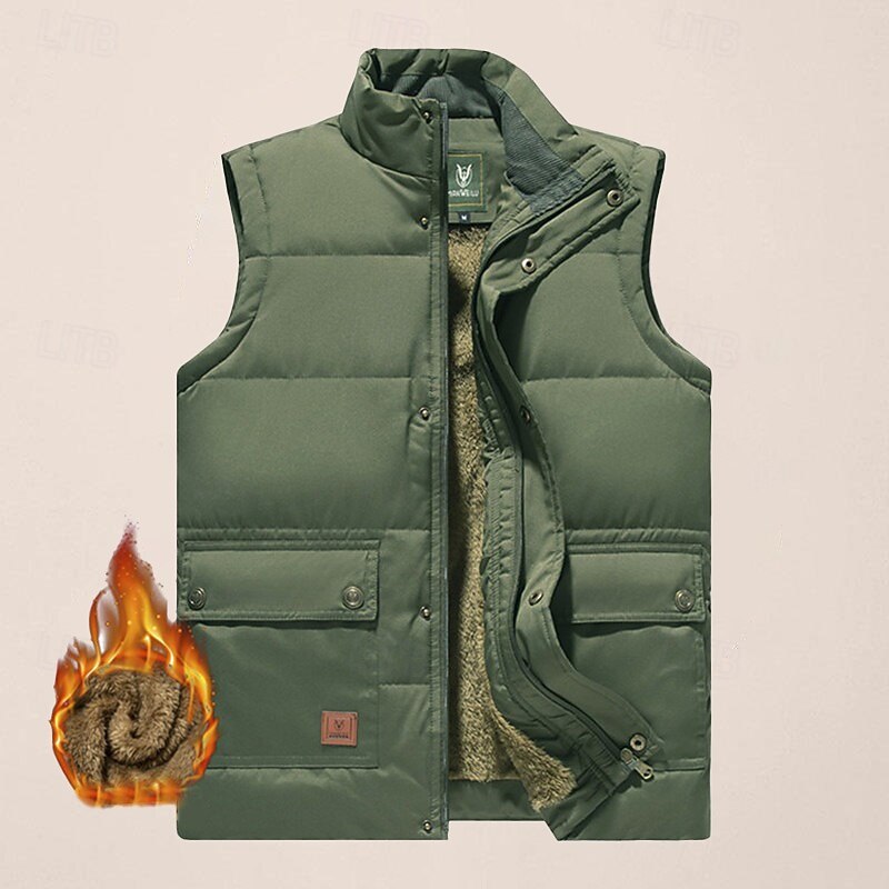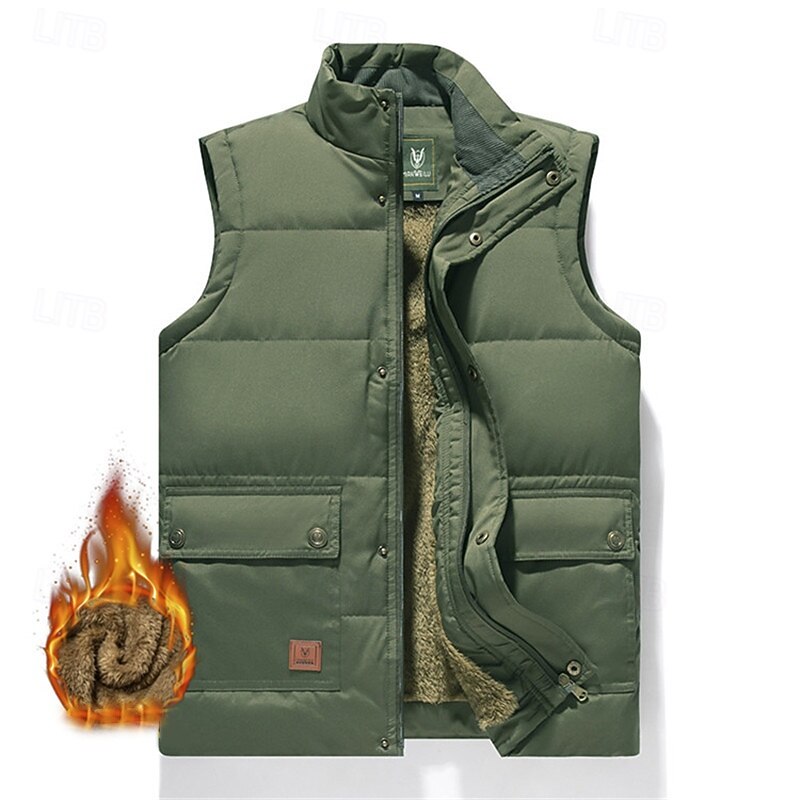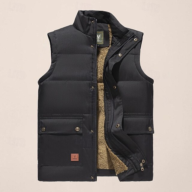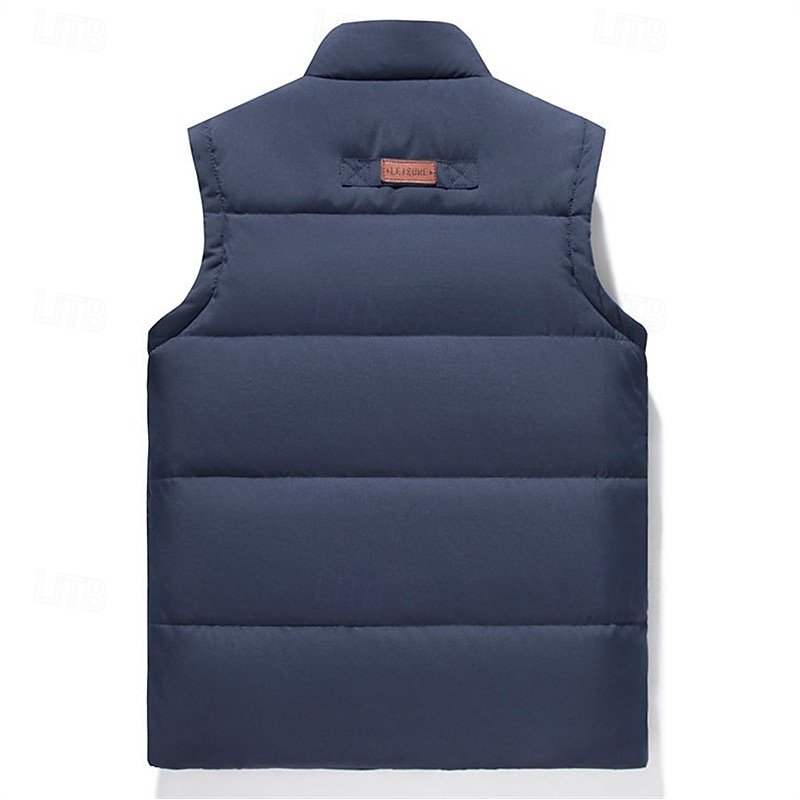 More information about Men's Quilted Vest Daily Casual Fall & Winter Pocket Polyester Comfortable Solid Color Zipper Stand Collar Black Khaki Army Green Dark Blue Vest