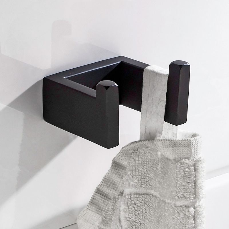 Bathroom Accessory Set Include Towel Bar / Toilet Paper Holder and Robe Hook New Design Stainless Steel Material Wall Mounted Matte Black 4pcs 2
