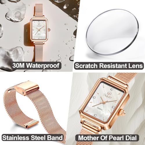 Stainless Steel Watches for Women,Classisc Dial Mesh Bractelet Ladies for Small Wrists Rectangle Face,Exquisite Crown,Vintage Waterproof,reloj para Mujer 6