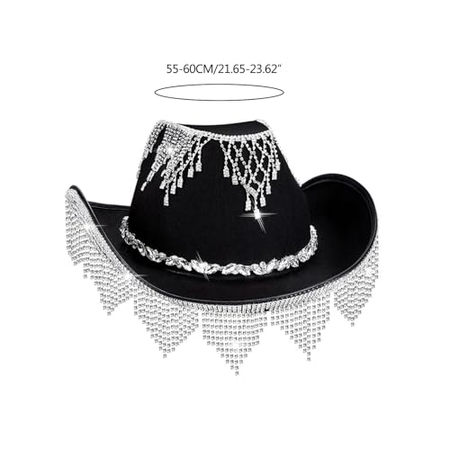 Vacation Hats Tassels Hand Beading Crystal for Girl for Carnivals Music Festival Black 6