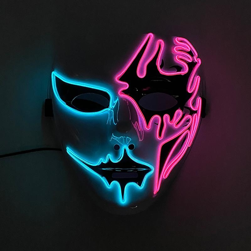 Neon Light LED Mask LED Halloween Scary Mask Cosplay Party Masque Masquerade Masks Halloween Costume Carnival Glow Party Props 1