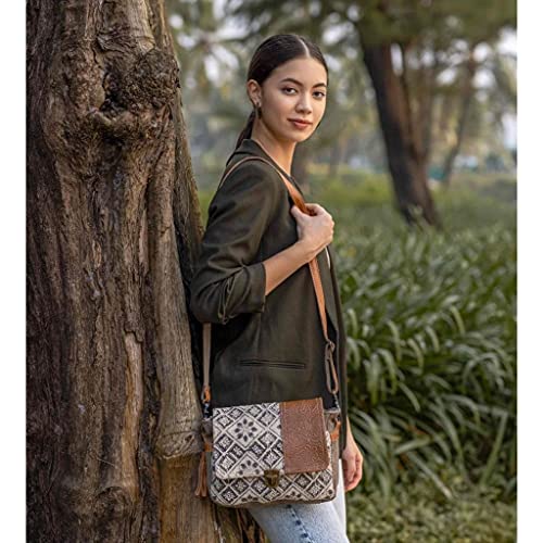 HOT ! Myra Bag Spell Bound Messenger Bag Upcycled Cotton & Leather S-2875