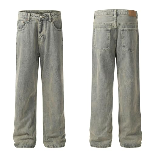 More information about Jeans Pants Trouser Denim Retro Straight Tube Street Trendy Washed Blue Casual Commuter for Men