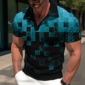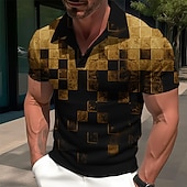 More information about Men's Plaid Graphic Prints Geometry Polo Shirts Golf Shirt Short Sleeves Shirt Cuban Collar Outdoor Street Yellow Red Blue Sky Blue Purple Print Clothing Apparel Fashion Designer Casual Breathable