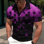 Men's Plaid Graphic Prints Geometry Polo Shirts Golf Shirt Short Sleeves Shirt Cuban Collar Outdoor Street Yellow Red Blue Sky Blue Purple Print Clothing Apparel Fashion Designer Casual Breathable