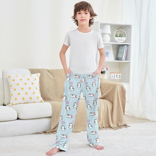Boy's Pants Cute Penguin Heart Blue Balloon Jogger Pants Elastic Waist Long Bottoms Trousers with Pockets 6-14 Years 6