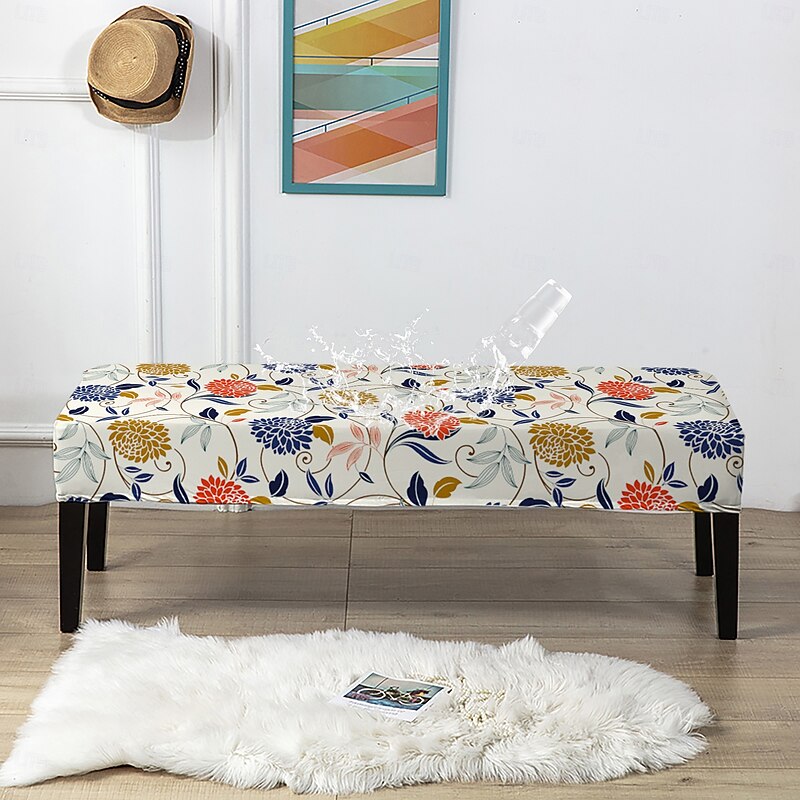 HOT ! Bench Cover, Water-Resistant Microfiber Slipcover with Geometric or Plant Print, Furniture Protector for Entryway, Bedroom, or Living Room