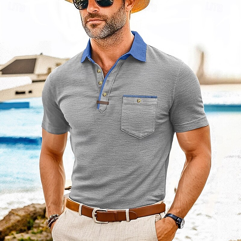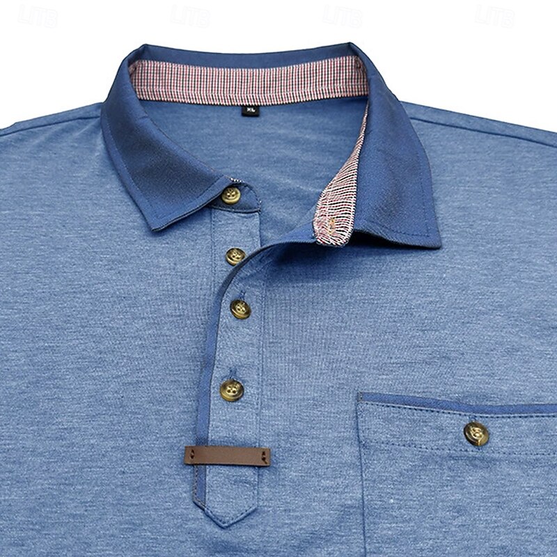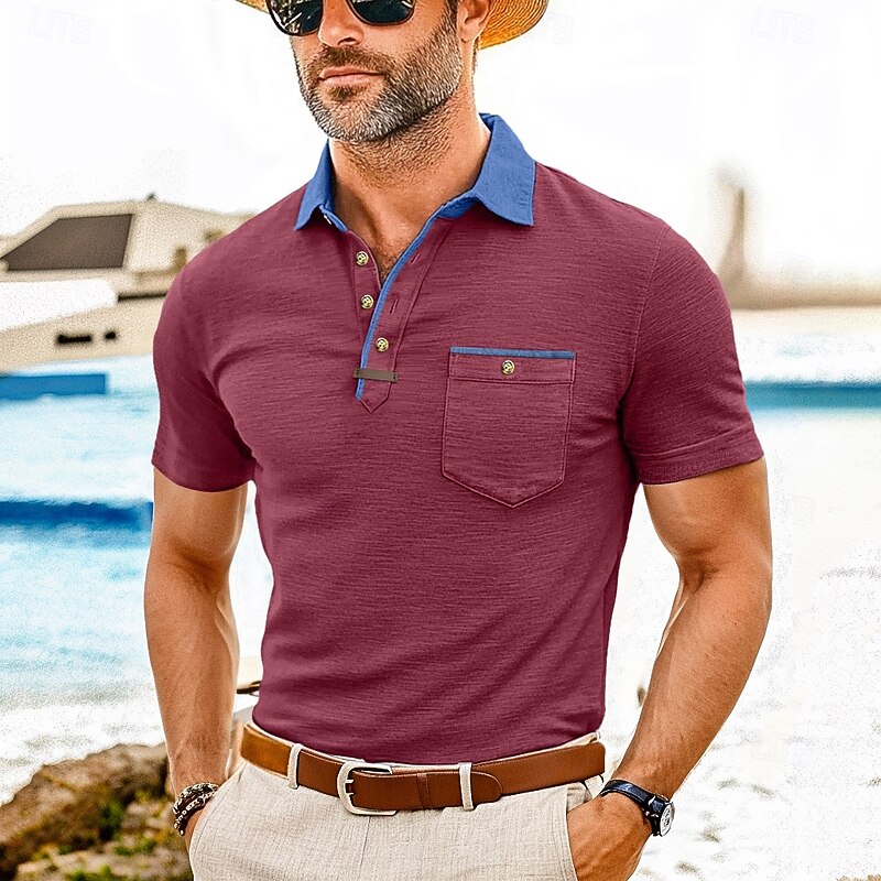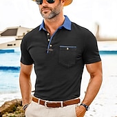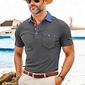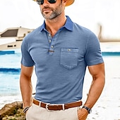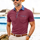 More information about Men's Polo Golf Shirt Business Casual Classic Short Sleeve Fashion Solid Color Buttons Pocket Summer Spring Regular Fit Forest Green Denim Blue Black White Dark Red Burgundy Polo