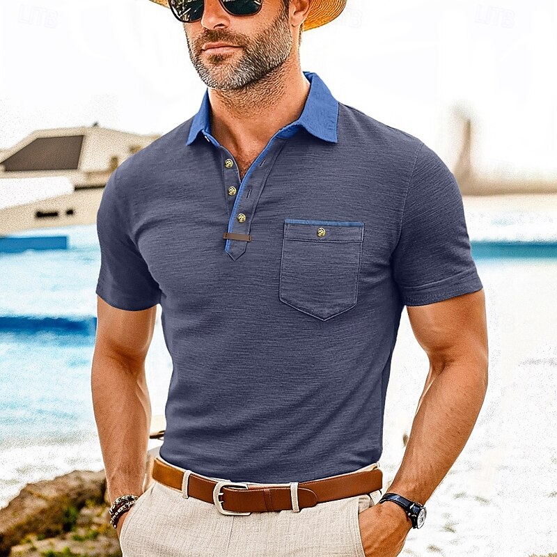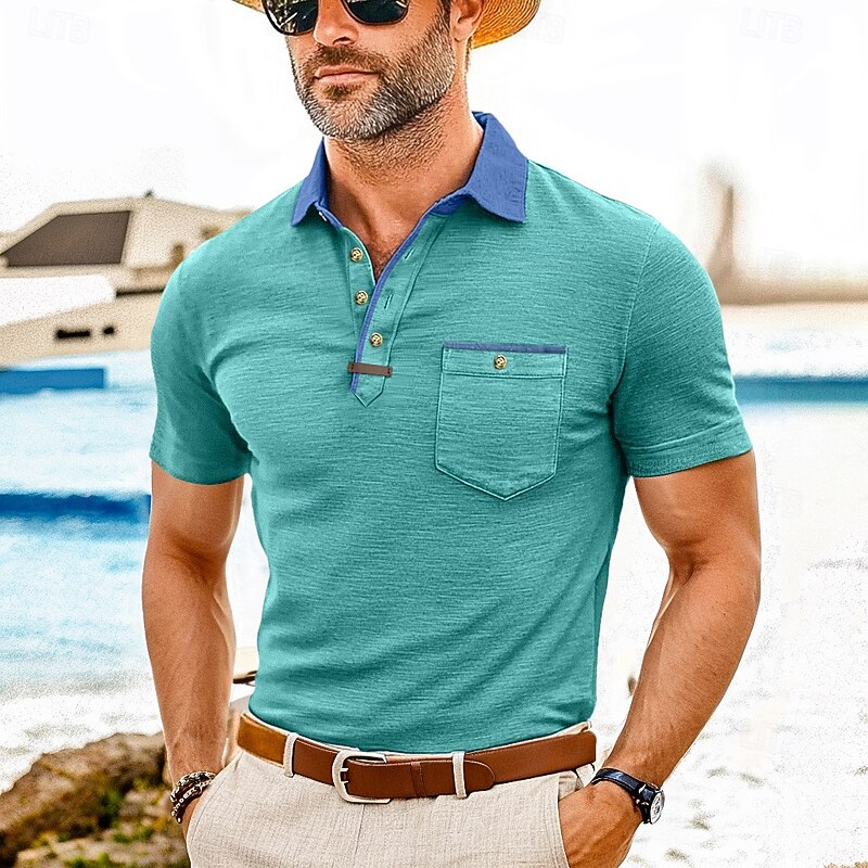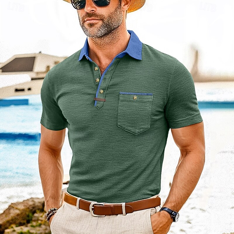 Men's Polo Golf Shirt Business Casual Classic Short Sleeve Fashion Solid Color Buttons Pocket Summer Spring Regular Fit Forest Green Denim Blue Black White Dark Red Burgundy Polo 24