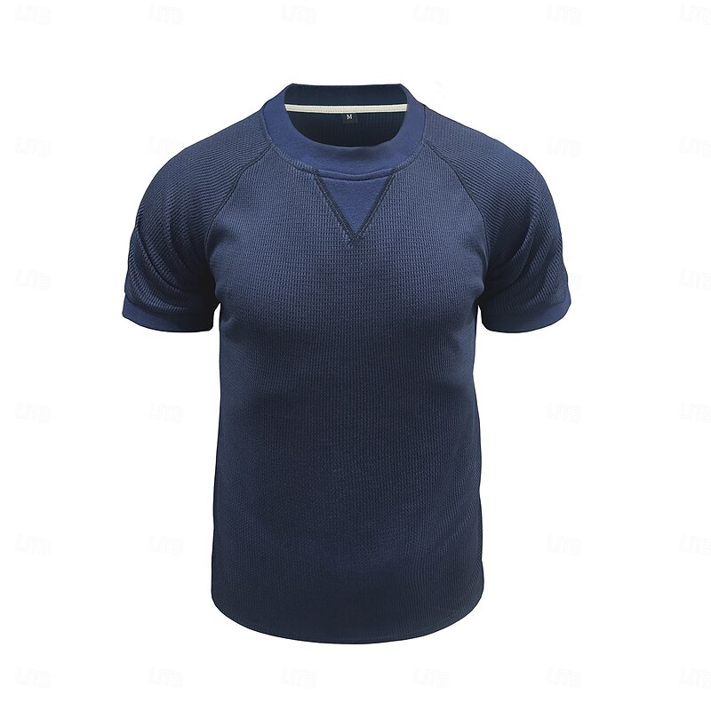 More information about Men's Waffle T-shirt T Shirt Short Sleeve Shirt Tee Top Short Sleeve Crew Neck Spring & Summer Plain Fashion Designer Basic Vacation Street Going out Black White Royal Blue Top Tee for Men
