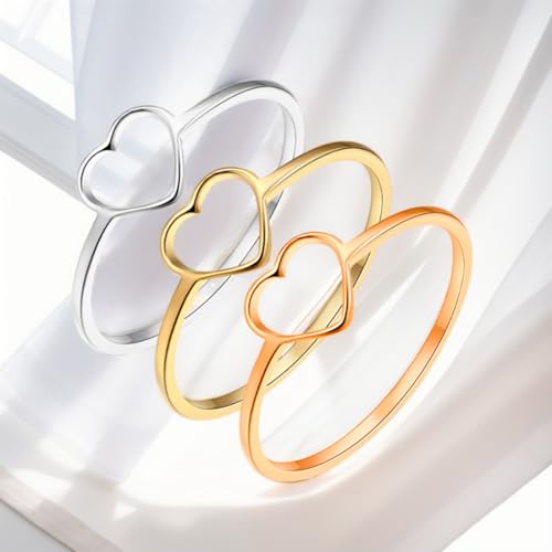 Stainless Steel Simple Cute Love Heart Classical Plain Stacking Band Statement Wedding Promise Ring For Women 3
