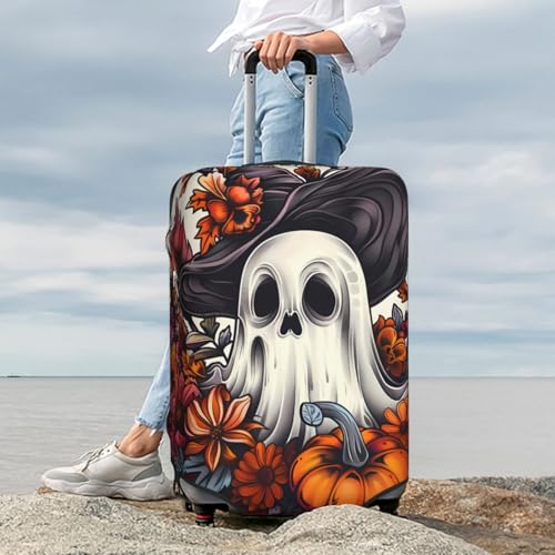 Halloween Pumpkin Flower Ghost Travel Luggage Covers - Elasticity Suitcase Covers Protector for Luggage 18-32 Inch 7