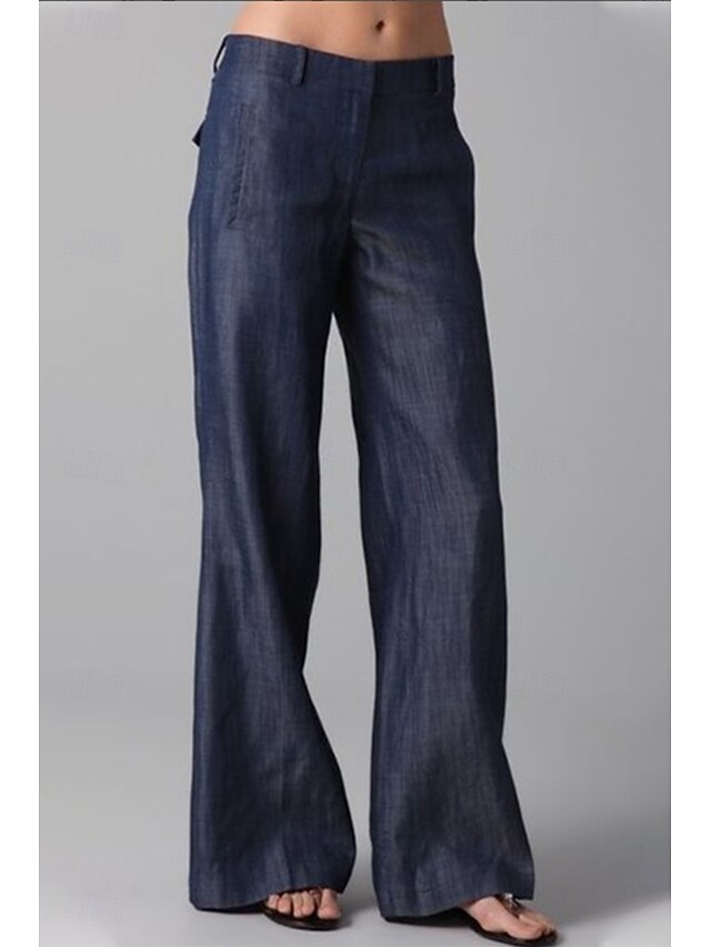 More information about Women's Pants Slacks Fashion Streetwear Full Length Natural Plain Pocket Comfy Outdoor Street Going out Navy Summer Regular Fit