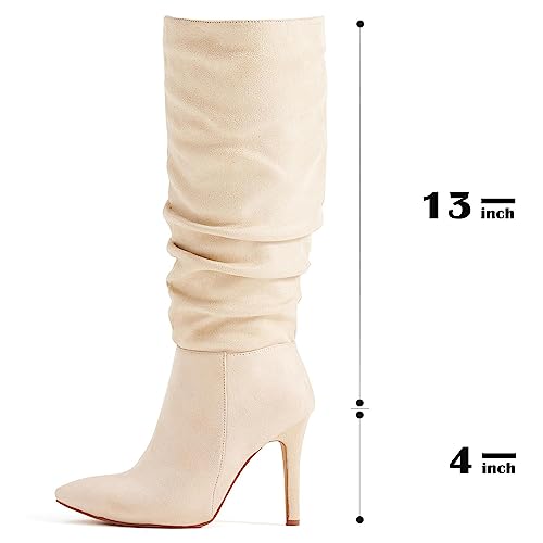 katliu Women Suede Knee High Boots Pointed Toe Stiletto Boot Slouchy Zipper High Heel Boots 4