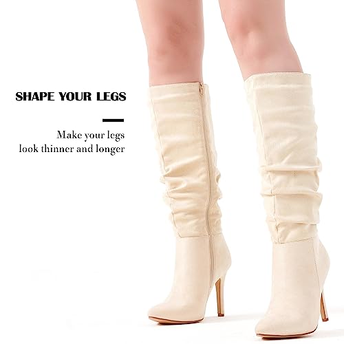 katliu Women Suede Knee High Boots Pointed Toe Stiletto Boot Slouchy Zipper High Heel Boots 7