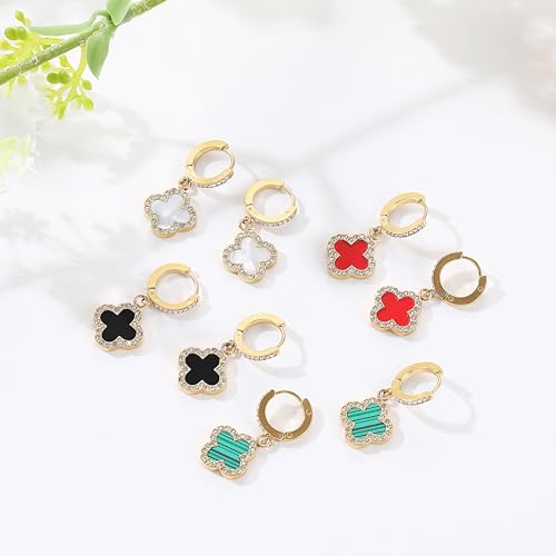 Clover Earrings for Women 18K Gold Plated Four Leaf Clover Hoop Earrings Simple Lucky Drop Jewelry Gifts for Women 5