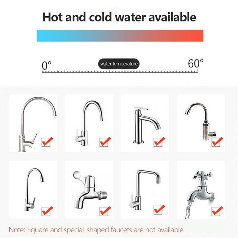 】 The water filter pressure is splash-proof and can help save water by 40% - 70%, the temperature of the faucet sprayer should not exceed 60 degrees.