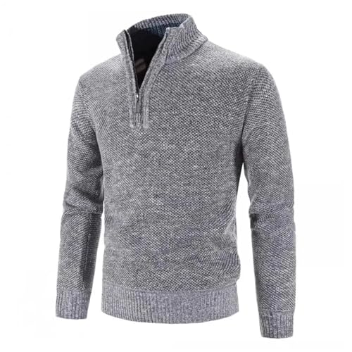 Men Thick Knitted Sweater Solid Color Zipper Mock Neck Pullovers Slim Fit Knit Causal Cardigan 7