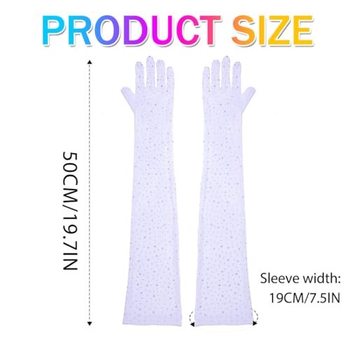 CASDRE Sparkly Rhinestone Gloves Long Mesh Elbow Length Arm Sleeves Wedding Prom Costume Gloves for Women 2