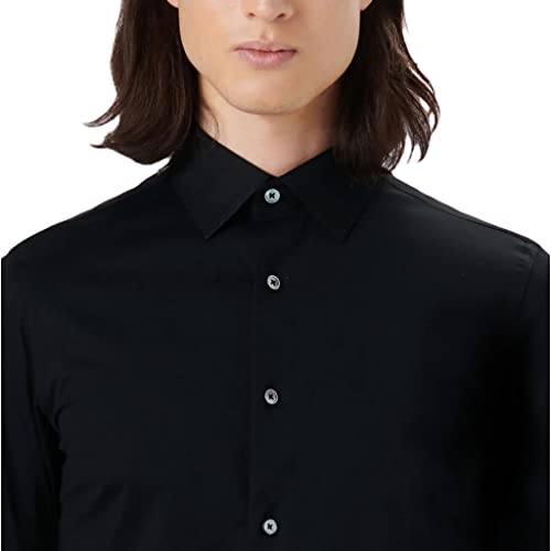 • Get the job done in style. The shirt's sleek point collar, full button French placket, adjustable notched cuffs, and curved hemline exude sophistication, while its ability to look great unbuttoned or with a necktie offers endless styling options