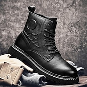 More information about Black Faux Leather Men's Lace-Up Boots with Rounded Toe, Metal Button Detail, and Heavy-Duty Sole – A Must-Have for Motorcycle Riders, Rock Lovers, Casual Fashion and Street Style