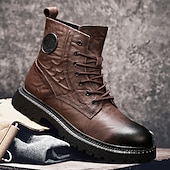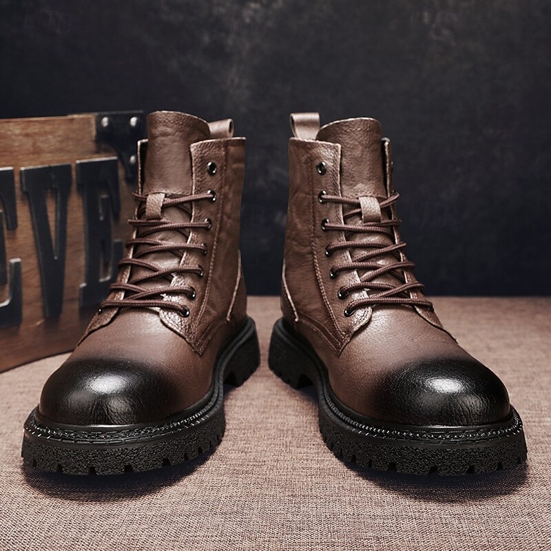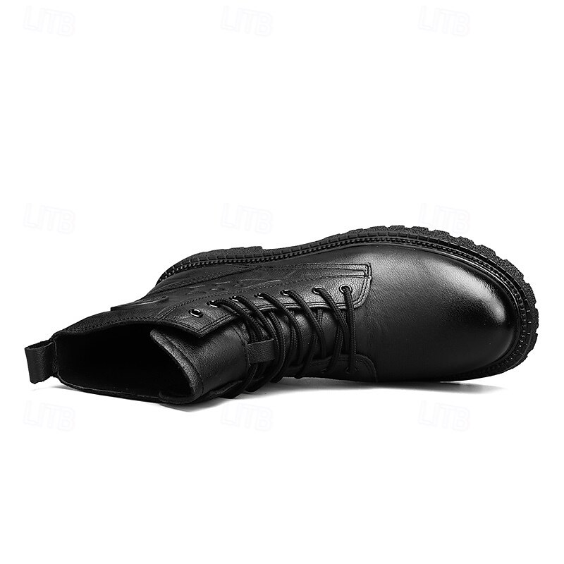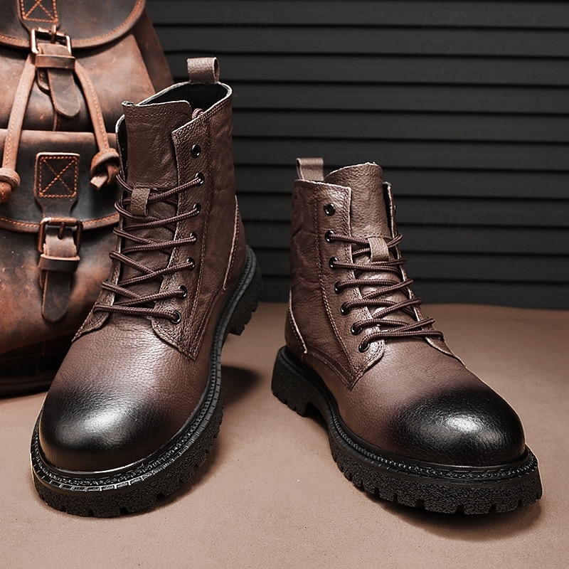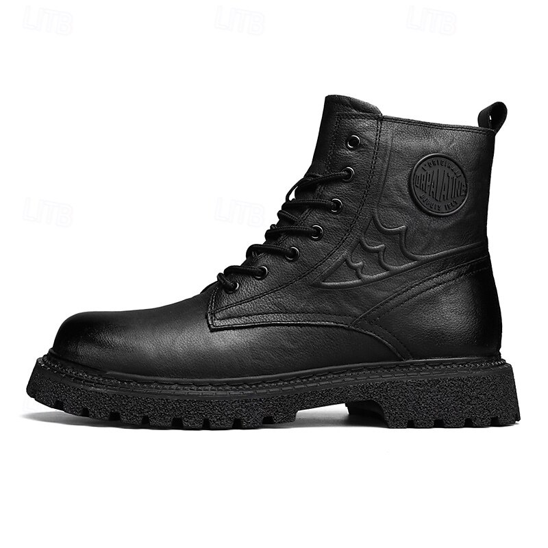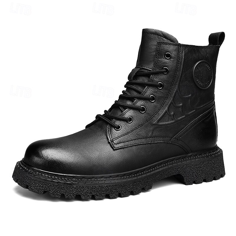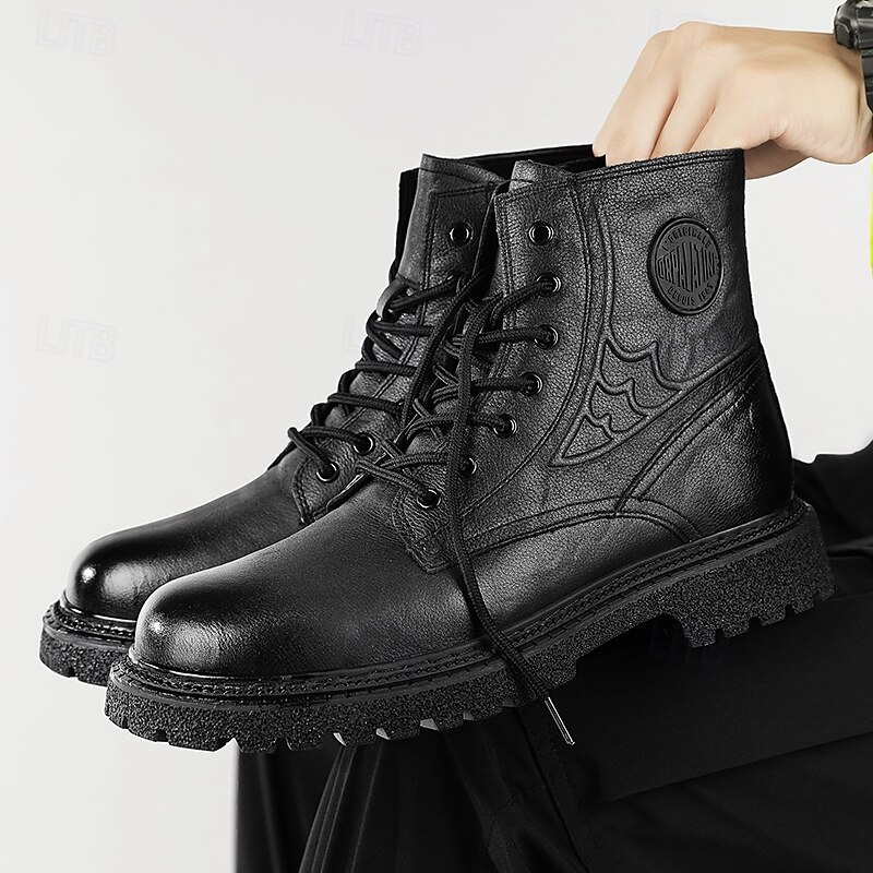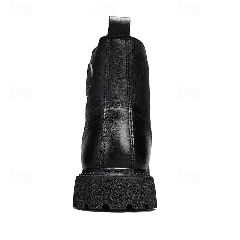 HOT ! Black Faux Leather Men's Lace-Up Boots with Rounded Toe, Metal Button Detail, and Heavy-Duty Sole – A Must-Have for Motorcycle Riders, Rock Lovers, Casual Fashion and Street Style