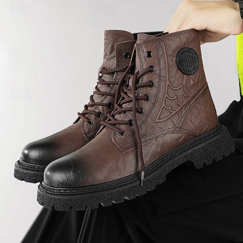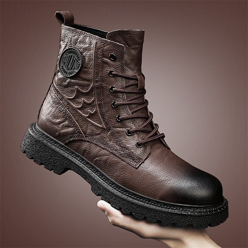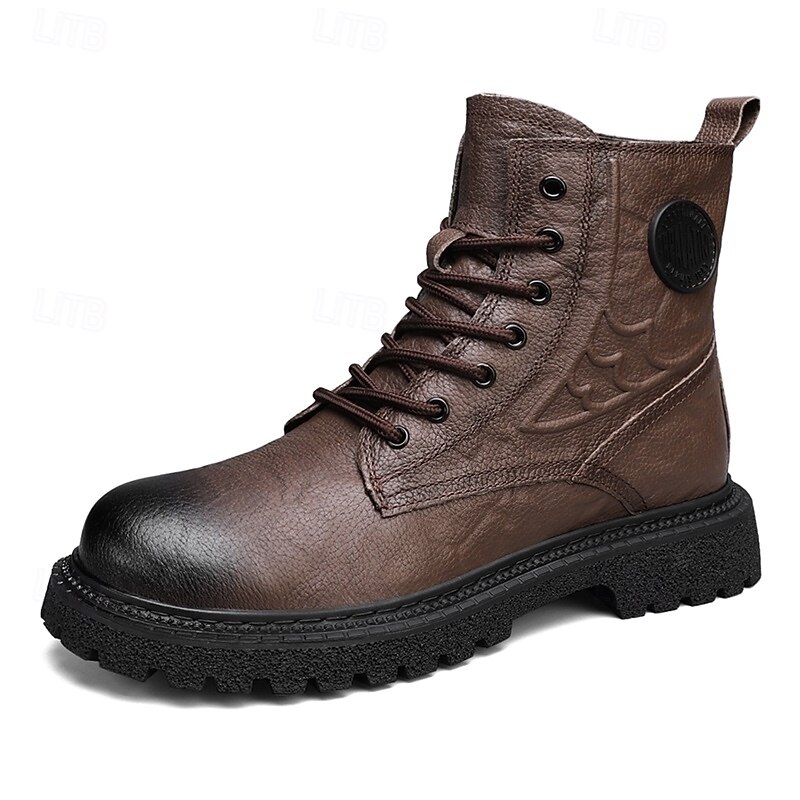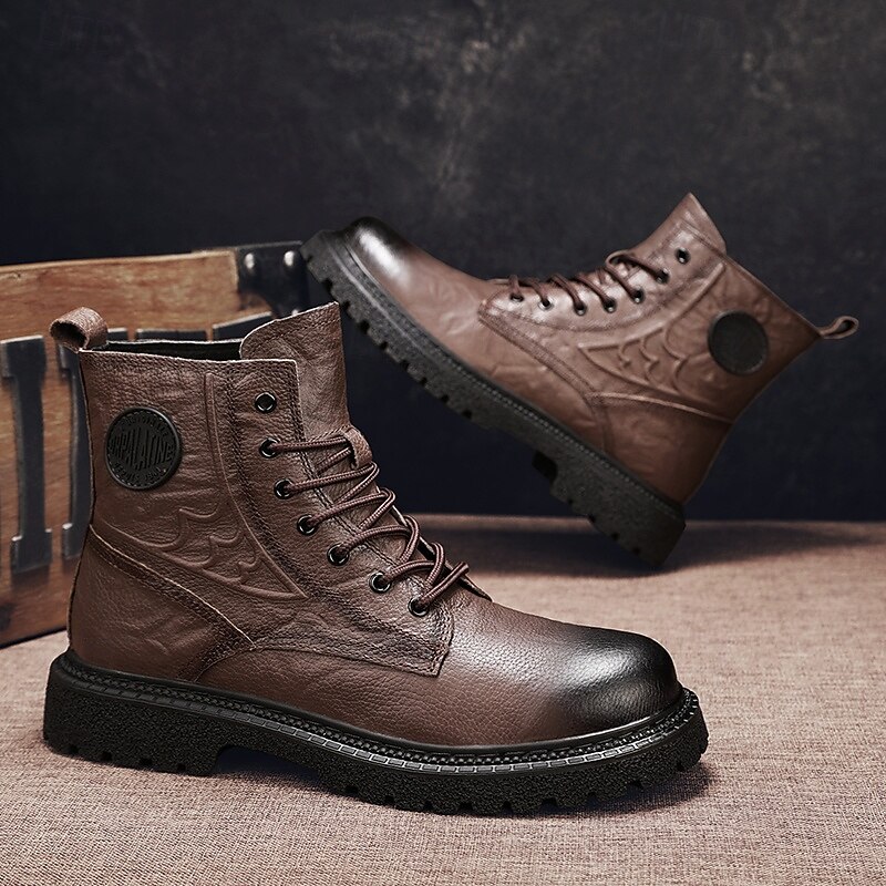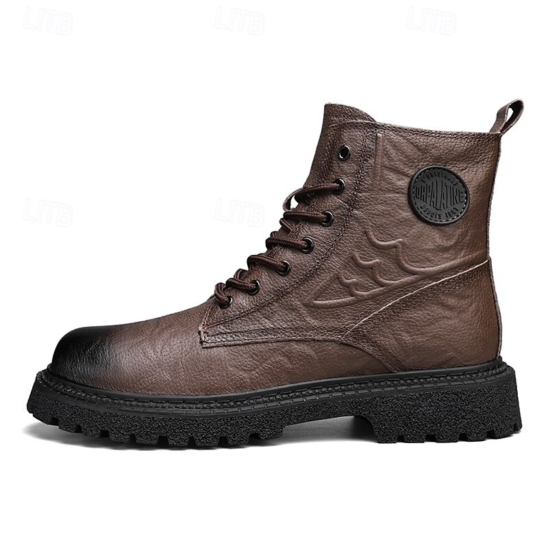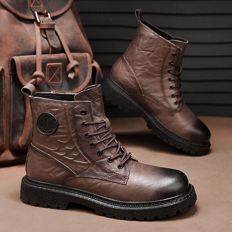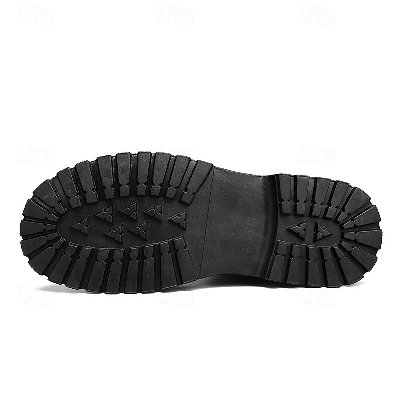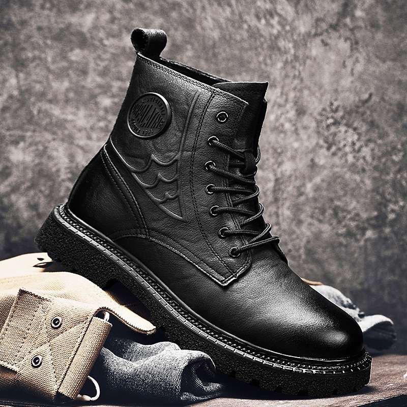 HOT ! Black Faux Leather Men's Lace-Up Boots with Rounded Toe, Metal Button Detail, and Heavy-Duty Sole – A Must-Have for Motorcycle Riders, Rock Lovers, Casual Fashion and Street Style