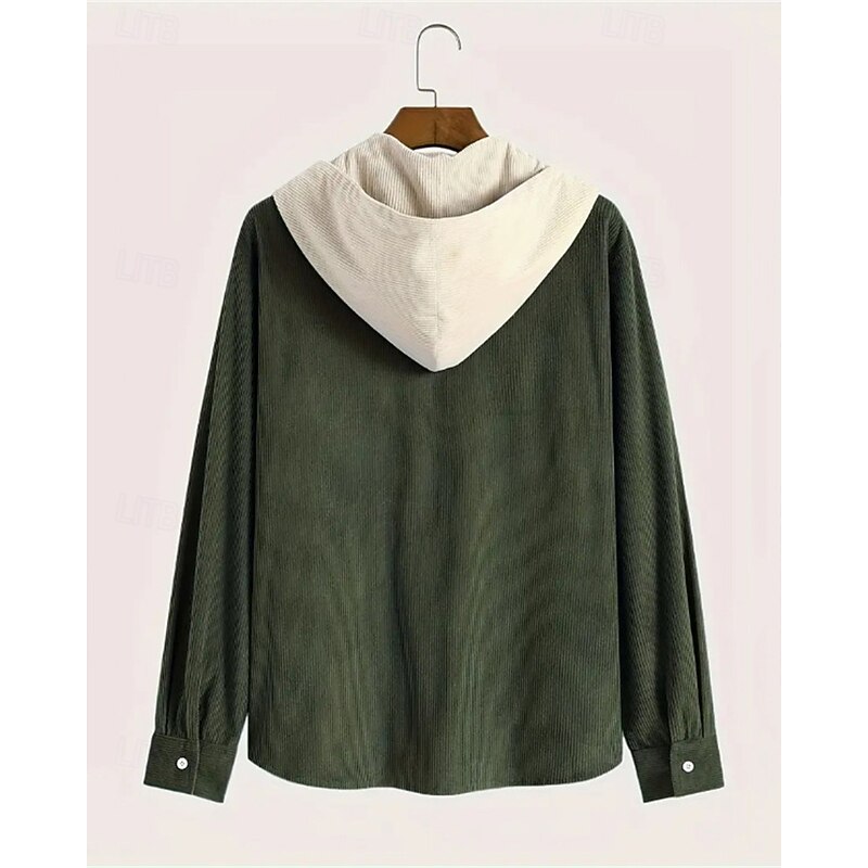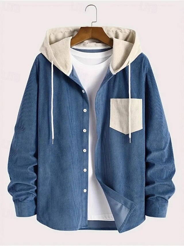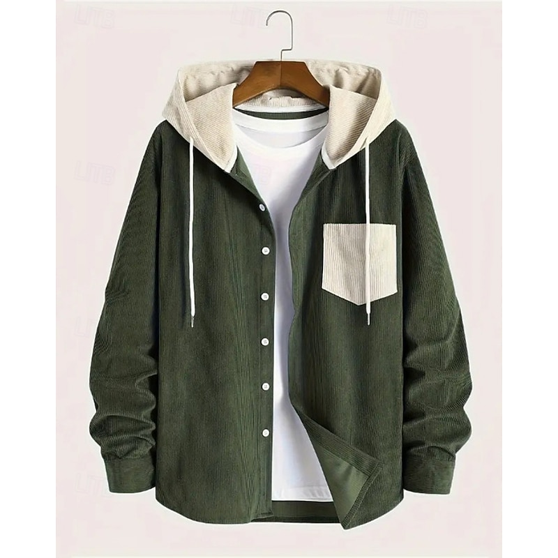 More information about Men's Lightweight Jacket Corduroy Jacket Casual Jacket Vacation Daily Breathable Pocket Fall Winter Color Block Fashion Classic Hooded Regular Black Blue Army Green Jacket