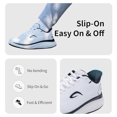 • Easy On/Off Tennis Shoes for Women: The feature of these women's casual tennis shoes is the elastic and comfortable heel. Slip-resistant heel lining keeps feet secure while allowing effortless entry and removal.