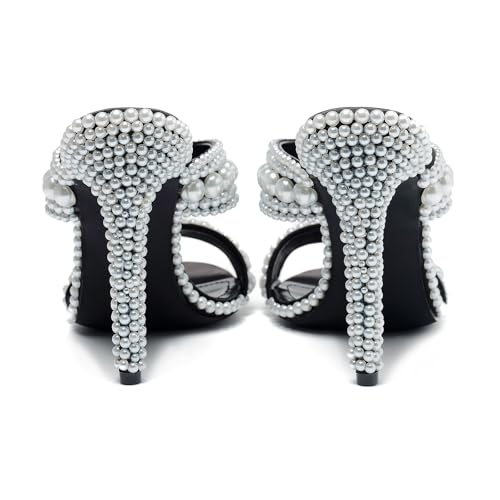 Women's Pearl Open-Toe Sparkly 4.3IN Stiletto Heels Sandals Nightclub Party Wedding Shoes 5