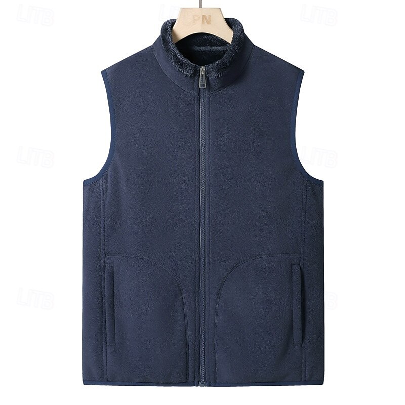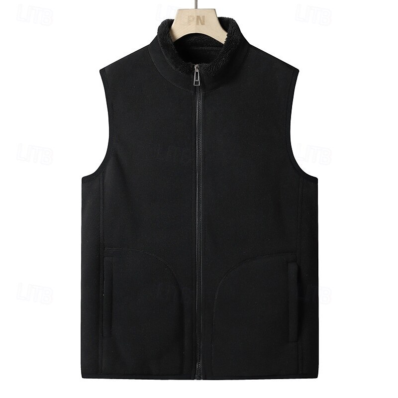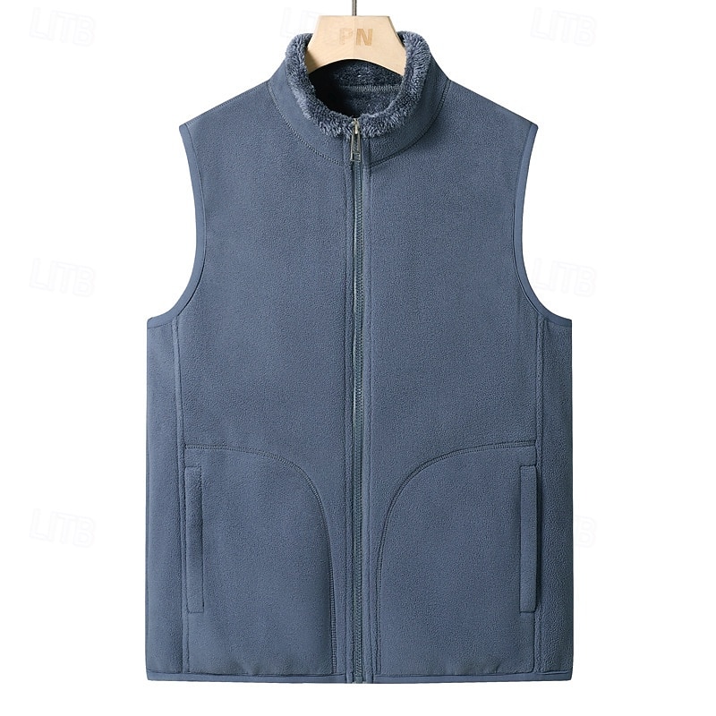 More information about Men's Fleece Vest Vest Polar Fleece Gilet Daily Date Vacation Fashion Casual Fall & Winter Pocket Polyester Thermal Warm Comfortable Plain Zipper Stand Collar Regular Fit Black Dark Blue Dark Gray