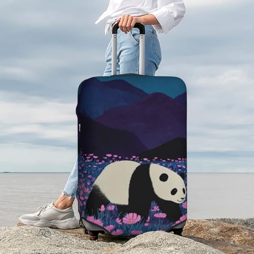 Panda Walking Pink Daisies Field Elastic Travel Luggage Covers Dustproof Scratch-Resistant Suitcase Protector Fit 22-24 Inch 7