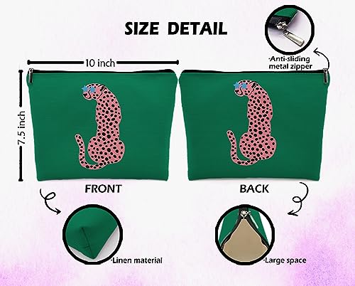 More information about Preppy Leopard Print Cosmetic Bag, Wildlife Animal Asian Pink Cheetah Makeup Bag Zipper Cosmetic Pouch Bag Travel Linen Makeup Organizer, Trendy Gifts for Women Teen Teenager Girls Her Teens