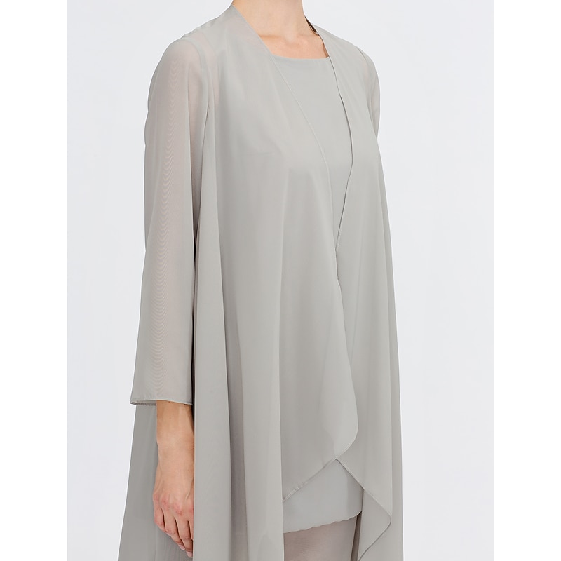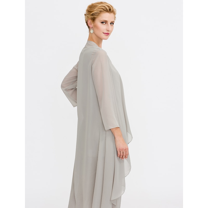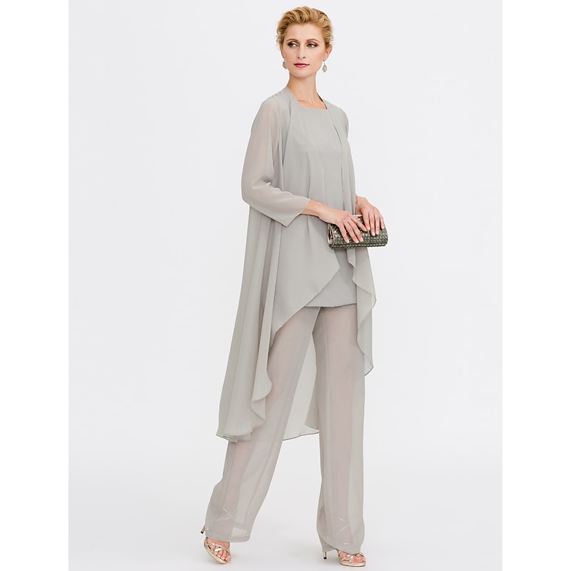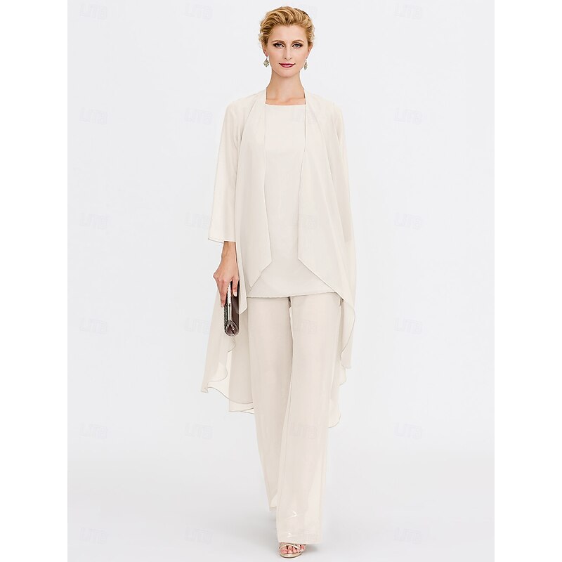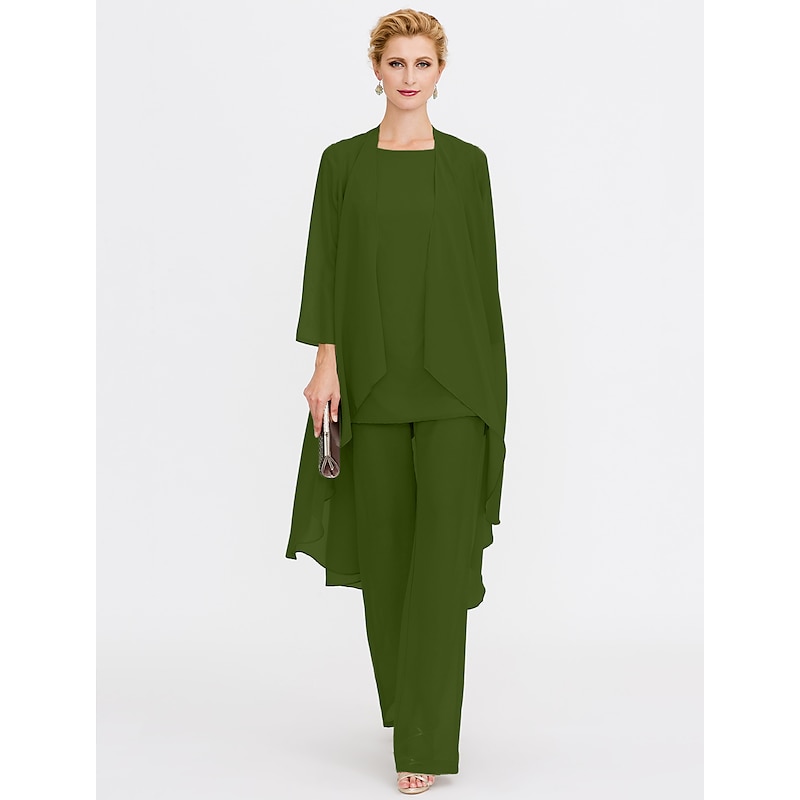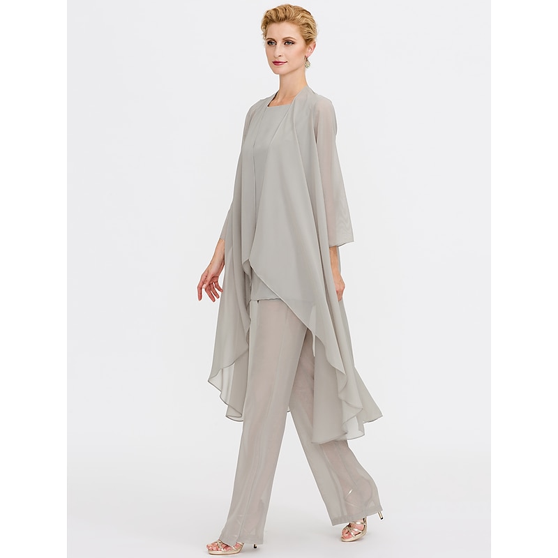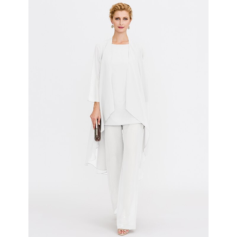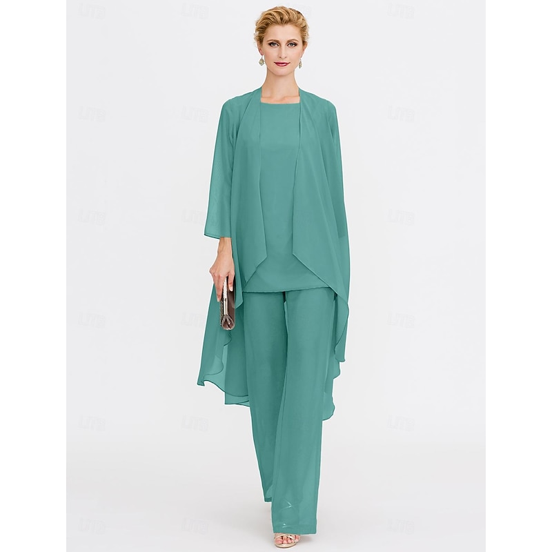 Beach Wedding Pantsuit 3 Piece Mother of the Bride  Wedding Guest Elegant Plus Size Included Bateau Neck Floor Length Chiffon Sleeveless Jacket es with Solid Color 21