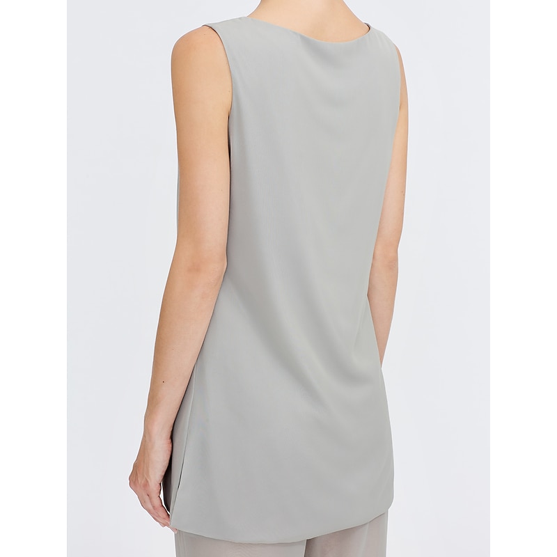 More information about Beach Wedding Pantsuit 3 Piece Mother of the Bride Wedding Guest Elegant Plus Size Included Bateau Neck Floor Length Chiffon Sleeveless Jacket es with Solid Color