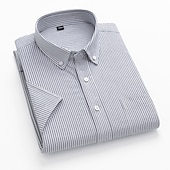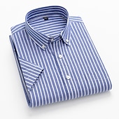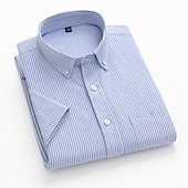 More information about Men's Dress Shirt Striped Shirt Button Down Shirt Oxford Shirt Stripe Wedding Office & Career Black Light Green Royal Blue Blue Short Sleeve Shirt Collar Summer Clothing Apparel Print