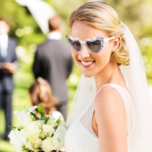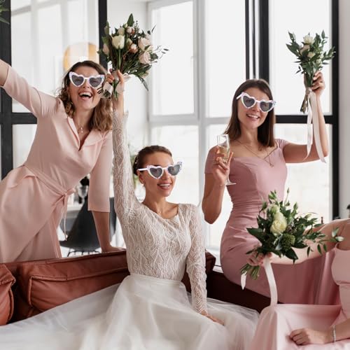 • Bride Accessories for Bachelorette Party: Designed for brides-to-be, these white heart sunglasses are perfect for bachelorette parties, bridal showers or any pre-wedding celebrations. Bride glasses add a fun and creative touch to your bridal accessories.