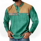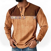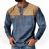 More information about Men's Graphic Ethnic Henley Shirt T shirt Tee Long Sleeve Retro Vintage Bohemian Casual Casual Spring Fall Dark Brown Blue Green Henley Henley T-Shirt