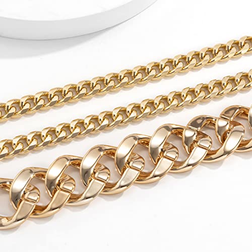 Wiwpar Boho Layered Chunky Bracelets Fashion Layered Link Chain Bracelets Set Adjustable for Women (Gold) 3