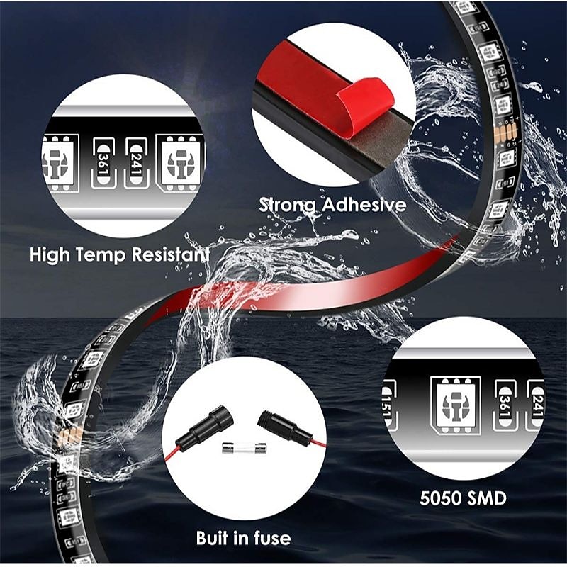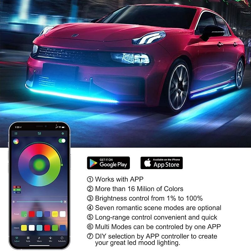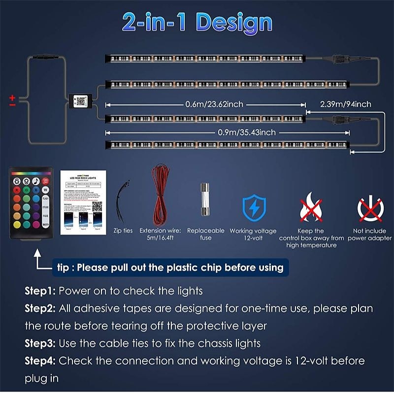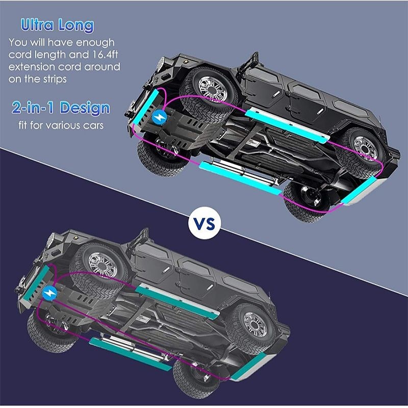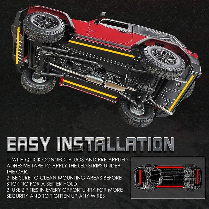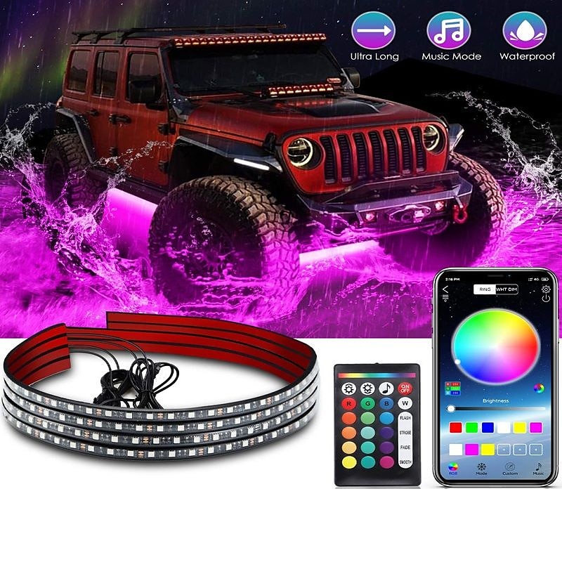 HOT ! WAZA Car Underglow Lights Exterior Kit 4PCS Underbody LED Strip Lights 8 Color Sound Active Function and Wireless Remote Control with 6FT Extension Wire Cable Tie IP68