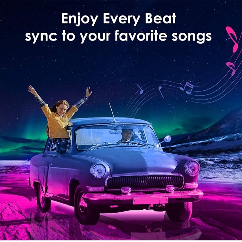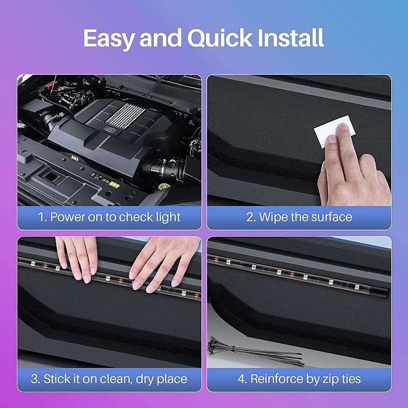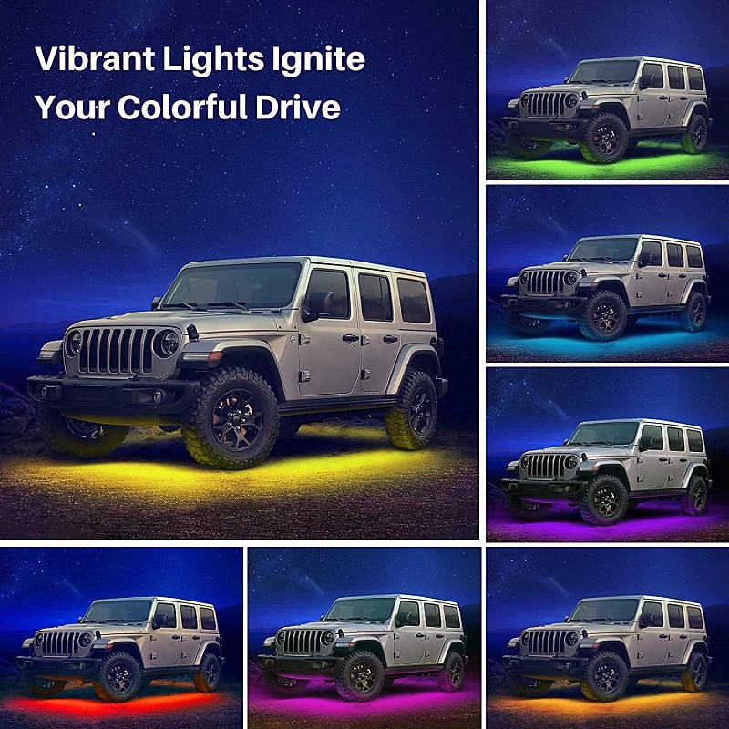 WAZA Car Underglow Lights Exterior Kit 4PCS Underbody LED Strip Lights 8 Color Sound Active Function and Wireless Remote Control with 6FT Extension Wire Cable Tie IP68 11