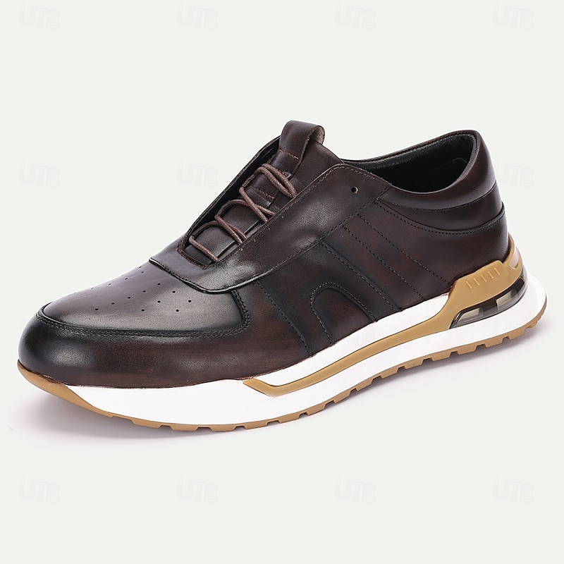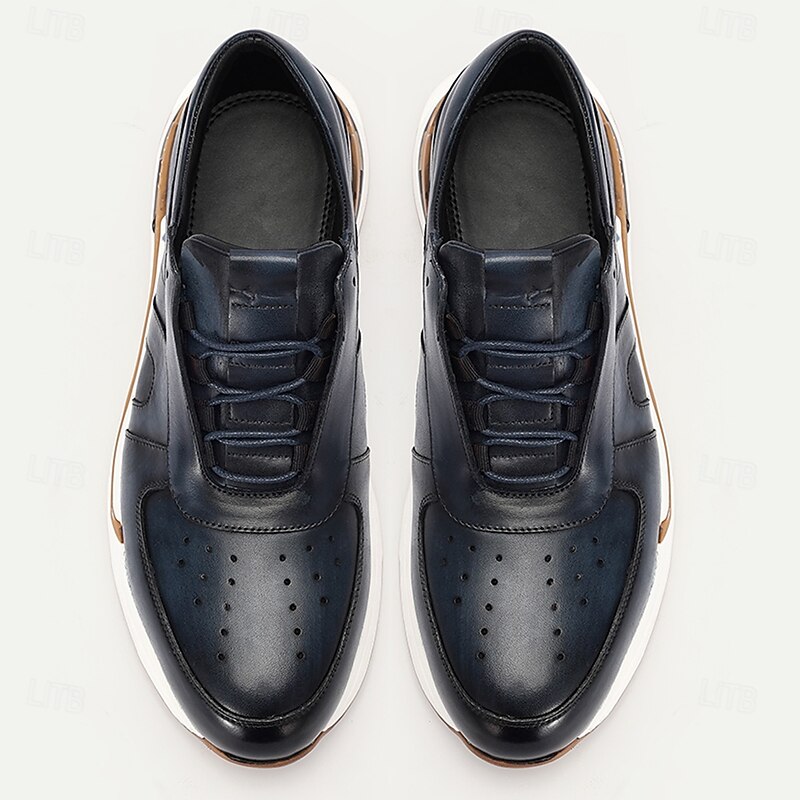 HOT ! Men's Navy Blue Leather Sneakers – Stylish Lace-Up Casual Dress Shoes with Brogue Detailing for Daily Wear