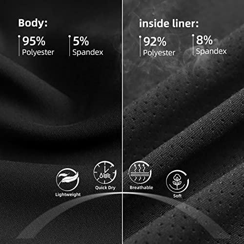 • Lightweight & Breathable: With upgrad fabric, the outer layer is lightweight and quick-drying; the inner lining is soft and breathable, keeping you cool and chafefree during intense workouts.