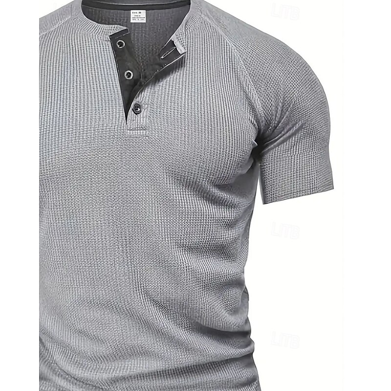 Men's Tee Short Sleeve Shirt Tee Top Short Sleeve Henley Summer Fashion Designer Plain Vacation Street Going out Black Dark Gray Light Grey Top Tee for Men 6