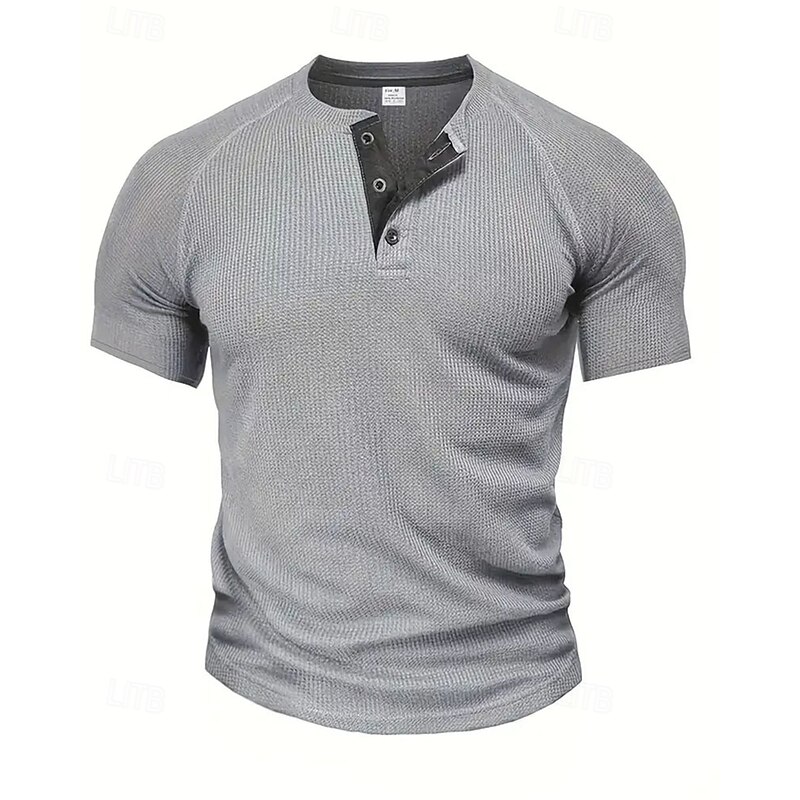 More information about Men's Tee Short Sleeve Shirt Tee Top Short Sleeve Henley Summer Fashion Designer Plain Vacation Street Going out Black Dark Gray Light Grey Top Tee for Men